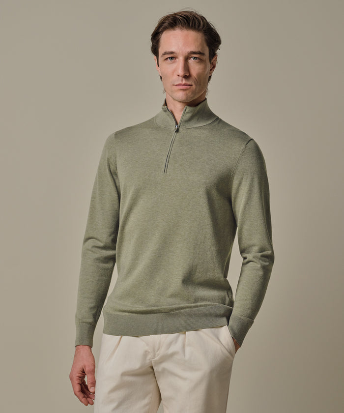 Profuomo - Feiner Strickpullover mit Half-Zip in zartem Grünton