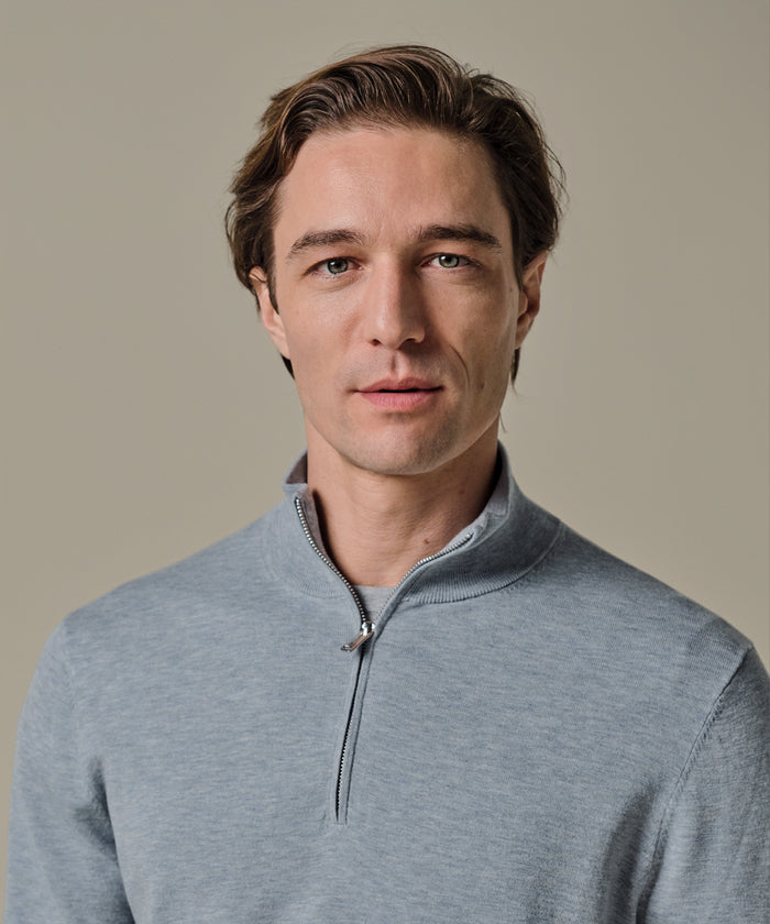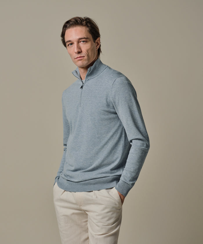 Profuomo - Feiner Strickpullover mit Half-Zip in zartem Hellblau