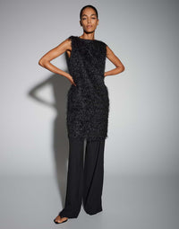 Someday - Gerades Etuikleid in leichter Federoptik - Qeder