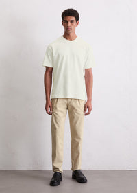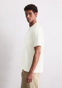 Lässiges T-Shirt aus angenehm schwerem Heavy Jersey mit weich angerauter Außenseite. Aus zertifizierter Bio-Baumwolle gefertigt, überzeugt es mit einem lockeren Relaxed Fit, leicht überschnittenen Schultern und geripptem Rundhalsausschnitt. Kurze Ärmel, gerader Saum und eine feine Logo-Stickerei auf der Brust runden das Design ab. Ideal für einen souveränen Look mit spürbarer Substanz.