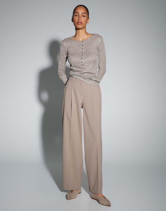 Opus - Wide Leg Pants in Mélange Optik - Maiga