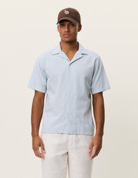 Les Deux - Kurzarmhemd mit Bowlingkragen in Bleu - Lukas