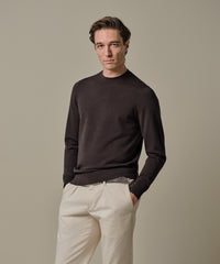 Profuomo - Dunkelbrauner Rundhalspullover in Feinstrick
