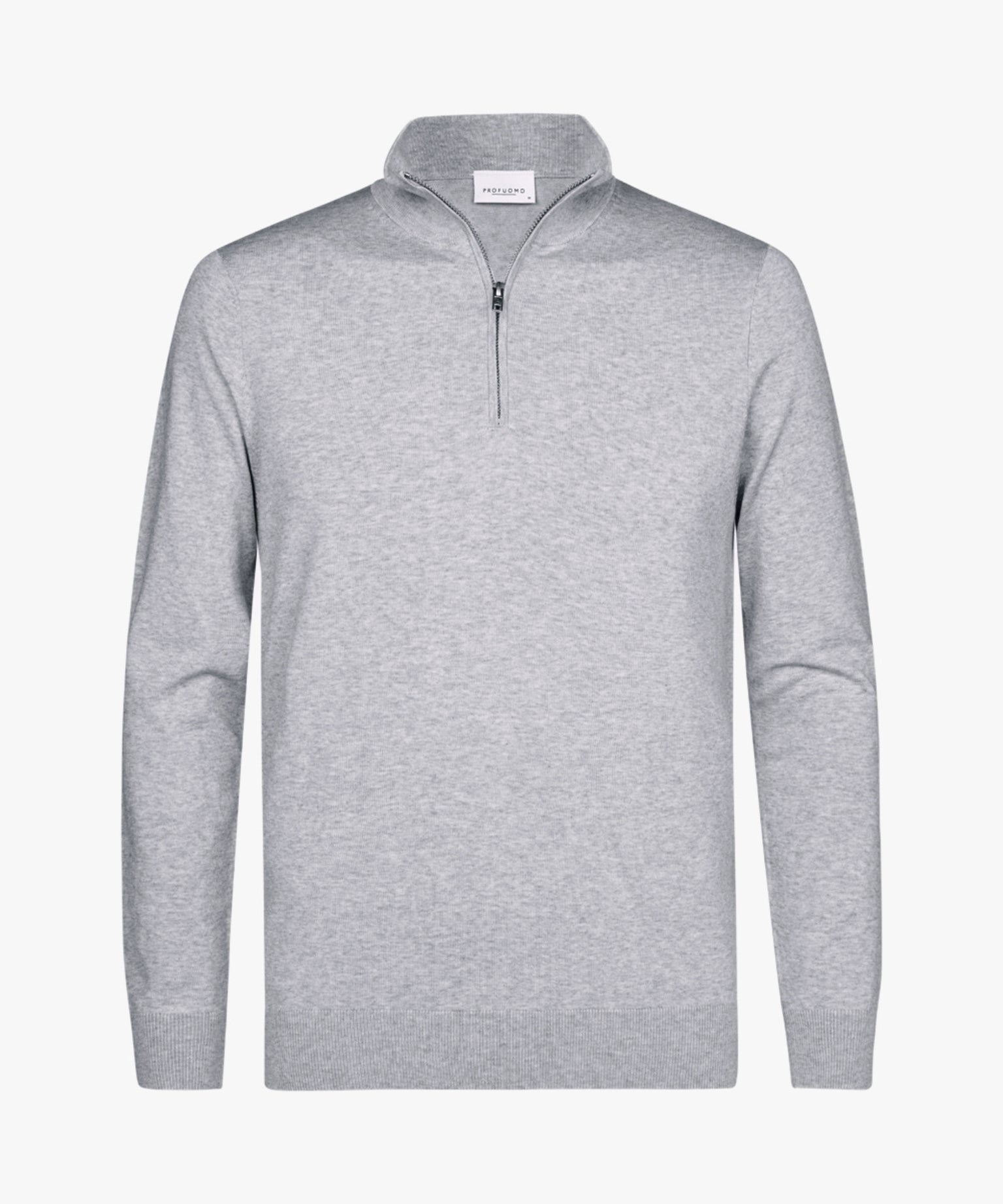 Profuomo - Feiner Strickpullover mit Half-Zip in Hellgrau